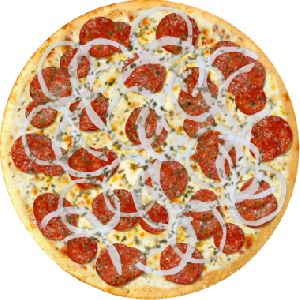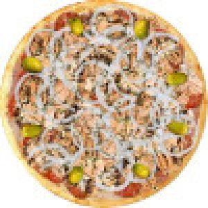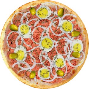Atum Sólido, Azeitona verde, Calabresa Fatiada, Cebolas, Molho de tomate fresco, Orégano