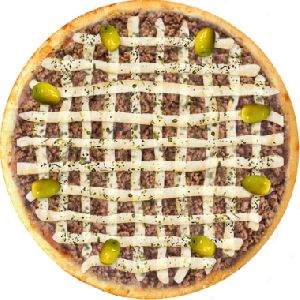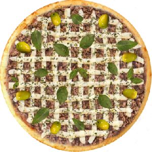 Azeitona verde, Calabresa moída, Catupiry, Molho de tomate fresco, Orégano