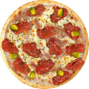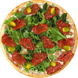Azeitona verde, Catupiry, Molho de tomate fresco, Muçarela, Orégano, Rúcula, Tomate seco