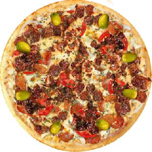 Azeitona verde, Bacon, Catupiry, Cebolas, Champignon, Frango desfiado, Molho de tomate fresco, Muçarela, Orégano, Pepperoni, Tomate em fatias