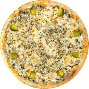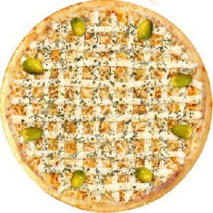 Azeitona verde, Catupiry, Frango desfiado, Milho verde, Molho de tomate fresco, Orégano