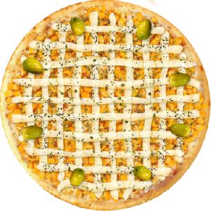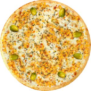 Azeitona verde, Milho verde, Molho de tomate fresco, Muçarela, Orégano
