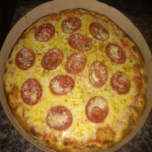 Azeitona verde, Calabresa Fatiada, Catupiry, Molho de tomate fresco, Orégano