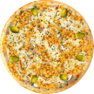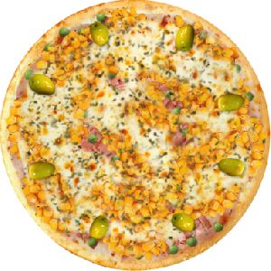 Azeitona verde, Ervilha, Milho verde, Molho de tomate fresco, Muçarela, Orégano, Ovo, Presunto