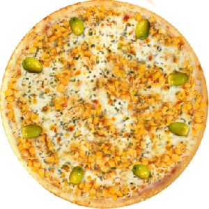 Azeitona verde, Milho verde, Molho de tomate fresco, Muçarela, Orégano